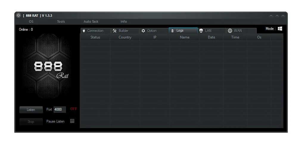 888 RAT v1.3.3 is a multi-platform Remote Access Trojan (RAT) targeting Windows, Android, and Linux systems. While presented in underground forums as a remote administration tool, its capabilities align with credential theft, surveillance, and network exploitation.