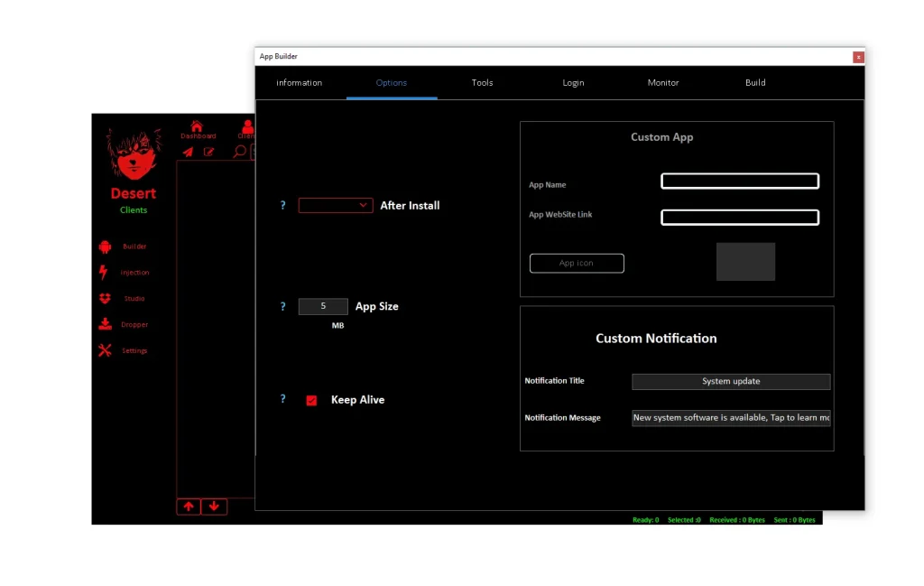 📌 The Builder system acts as the central control panel for attackers. It allows configuration of malware settings, monitoring of infected devices, and generation of custom malicious APKs. It essentially functions as the command-and-control interface that manages all infected endpoints.