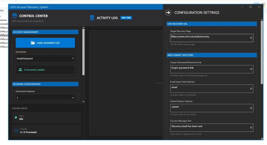 OVH EMAIL ACCESS CHECKER 2026 is a modern browser-emulation based recovery checking tool that automates OVH email recovery validation with accurate selectors, multi-instance processing, and stable timeout controls.