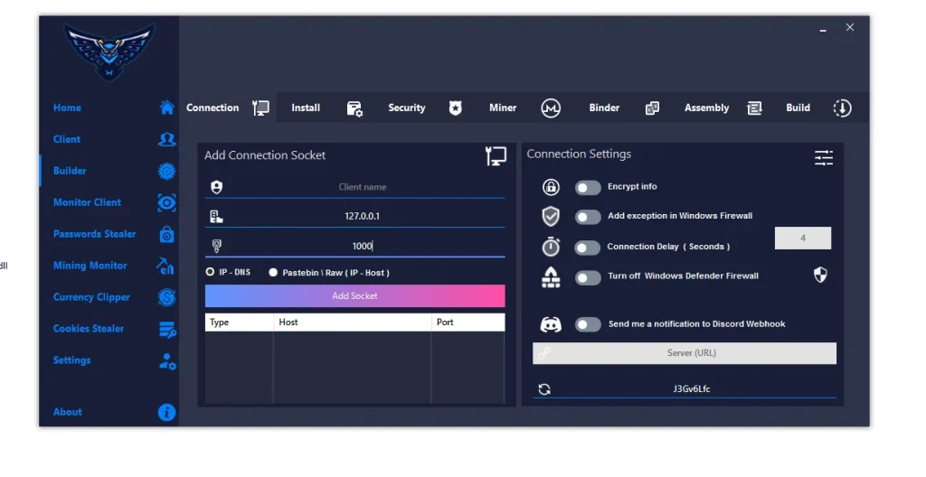 This feature allows attackers to manually configure IP addresses and ports to establish direct communication with infected machines. It ensures stable control even in restricted networks.